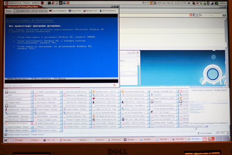 Ставлю себе винду под VMWare-player'ом. Так прикольно — винда в окошке ставится :)))
