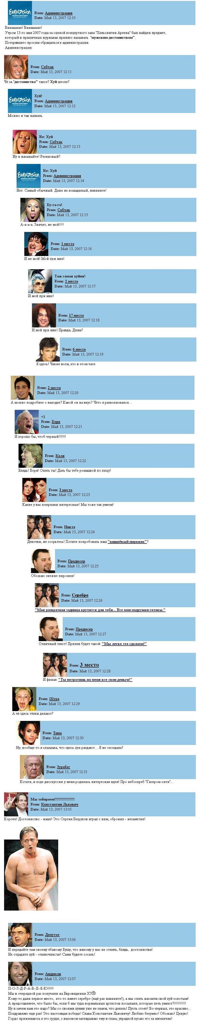 Ваще — очень весело будет, я думаю, смотреть на реакцию россиян по поводу Сердючки :). Вот нет, чтоб признать, что было реально прикольно — наверняка обосрать будут норовить :).